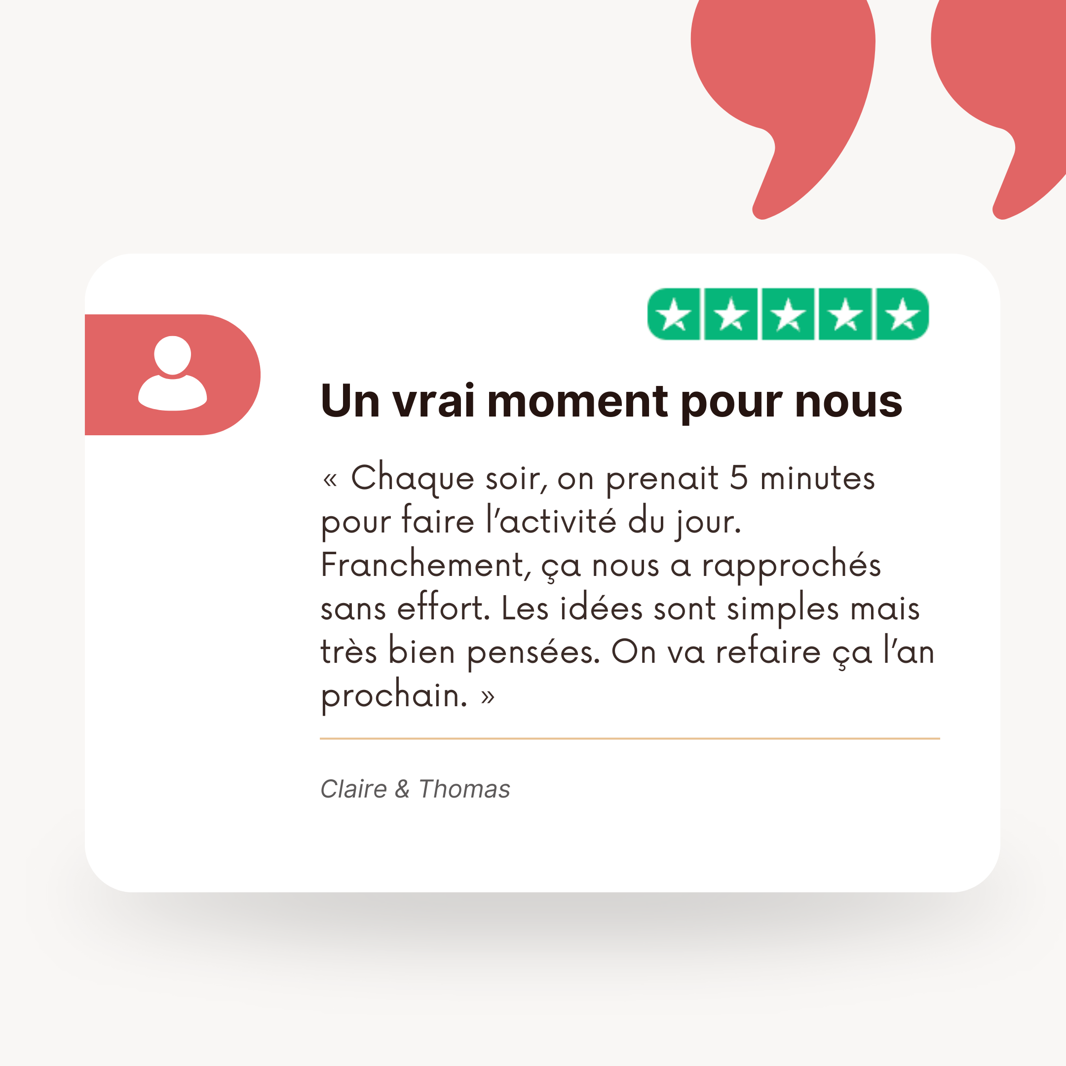 Chaque activité est pensée pour être simple, rapide et sans matériel, afin que tous les couples puissent en profiter, même après une longue journée.