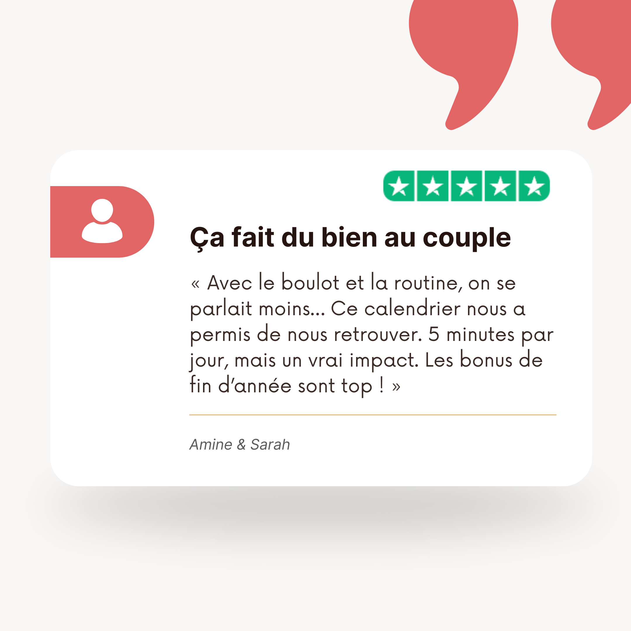 Ce calendrier a été pensé pour les couples réels, avec du travail, du stress, des horaires chargés… et l’envie de se retrouver.